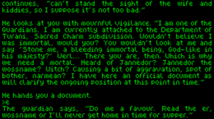 Have a chat with the devil in THE PAWN, ransack an entire island in THE GUILD OF THIEVES, restore luck itself to a whole country in JINXTER, uncover a conspiracy in CORRUPTION, become an inter-dimensional secret agent in FISH!, an ancient god in MYTH, walk in the footsteps of Alice in WONDERLAND and inherit a haunted mansion in THE LEGACY. Become a part of the fantasy of Magnetic Scrolls - you certainly won't regret it . . .