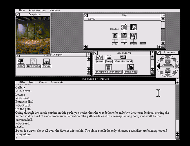 Have a chat with the devil in THE PAWN, ransack an entire island in THE GUILD OF THIEVES, restore luck itself to a whole country in JINXTER, uncover a conspiracy in CORRUPTION, become an inter-dimensional secret agent in FISH!, an ancient god in MYTH, walk in the footsteps of Alice in WONDERLAND and inherit a haunted mansion in THE LEGACY. Become a part of the fantasy of Magnetic Scrolls - you certainly won't regret it . . .