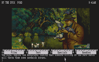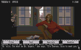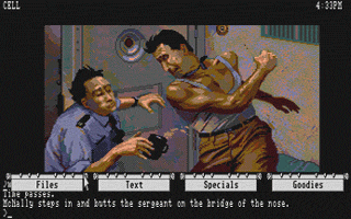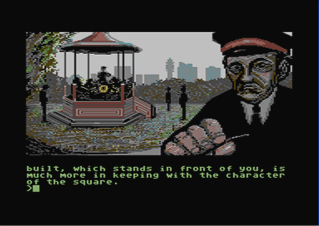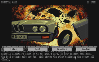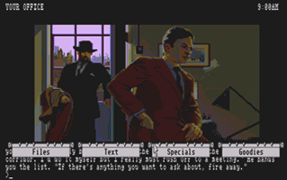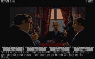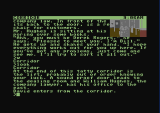 In this section you will find selected screenshots from "Corruption". Why only selected screenshots and not all of them? The Magnetic Scrolls games were, apart from their brilliant plots, all about what cool picture was going to come next. Showing all of them on this website would greatly spoil the fun, should you ever get the chance to play these games.