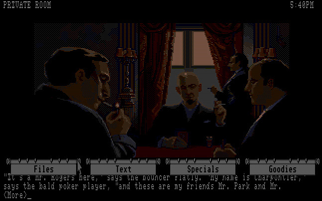 Have a chat with the devil in THE PAWN, ransack an entire island in THE GUILD OF THIEVES, restore luck itself to a whole country in JINXTER, uncover a conspiracy in CORRUPTION, become an inter-dimensional secret agent in FISH!, an ancient god in MYTH, walk in the footsteps of Alice in WONDERLAND and inherit a haunted mansion in THE LEGACY. Become a part of the fantasy of Magnetic Scrolls - you certainly won't regret it . . .