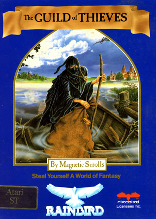 Guild of Thieves, from Magnetic Scrolls, the people who wrote The Pawn, winners of numerous major awards. Graphic illustrations to blow your socks off. Puzzles to blow your brains out. Frankly, we doubt that you're up to it ...