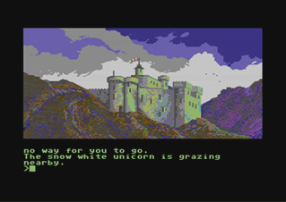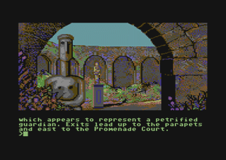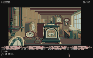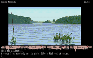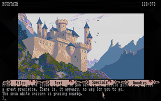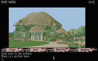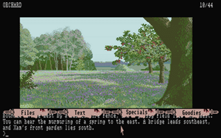 In this section you will find selected screenshots from "Jinxter". Why only selected screenshots and not all of them? The Magnetic Scrolls games were, apart from their brilliant plots, all about what cool picture was going to come next. Showing all of them on this website would greatly spoil the fun, should you ever get the chance to play these games. |