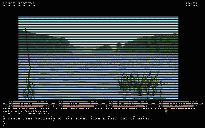 In this section you will find selected screenshots from "Jinxter". Why only selected screenshots and not all of them? The Magnetic Scrolls games were, apart from their brilliant plots, all about what cool picture was going to come next. Showing all of them on this website would greatly spoil the fun, should you ever get the chance to play these games.