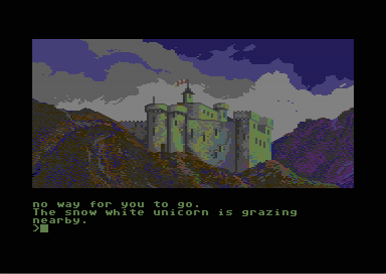 In this section you will find selected screenshots from "Jinxter". Why only selected screenshots and not all of them? The Magnetic Scrolls games were, apart from their brilliant plots, all about what cool picture was going to come next. Showing all of them on this website would greatly spoil the fun, should you ever get the chance to play these games. |