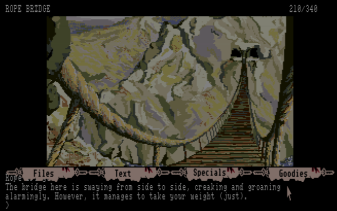 In this section you will find selected screenshots from "The Pawn". Why only selected screenshots and not all of them? The Magnetic Scrolls games were, apart from their brilliant plots, all about what cool picture was going to come next. Showing all of them on this website would greatly spoil the fun, should you ever get the chance to play these games.