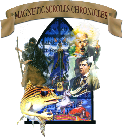 "The Pawn", "The Guild of Thieves", "Jinxter", "Corruption", Fish!", "Myth", "Wonderland" and "The Magnetic Scrolls Collection" © Magnetic Scrolls Ltd. 1985, 1987, 1988, 1989, 1990, 1991. "The Legacy" © Microprose Ltd. 1992. The Magnetic Scrolls copyright has been associated with: Rainbird Software, British Telecomsoft, Virgin Mastertronic and Microprose Ld. Currently the copyrights reside with Magnetic Scrolls Ltd. (Ken Gordon and Anita Sinclair). "The Magnetic Scrolls Chronicles" website is owned by Peter Verdi. The content of this site may not be used in any way without the permission of the webmaster. "The Magnetic Scrolls Chronicles" website © 2000 - 2011 by Peter Verdi.